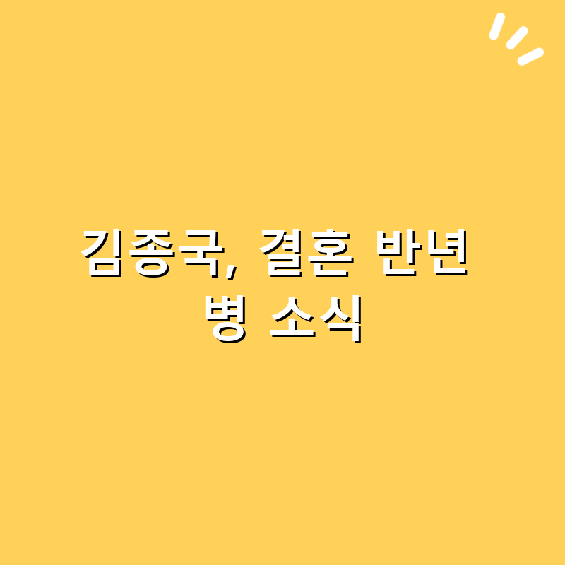 김종국은 최근 결혼한 지 반년이 지나고 갑작스럽게 병 소식을 전했습니다. 이 소식은 많은 팬들 사이에서 큰 충격을 주었으며, 그의 건강에 대한 관심이 높아졌습니다. 다음은 이번 상황에 대한 핵심 팩트입니다: