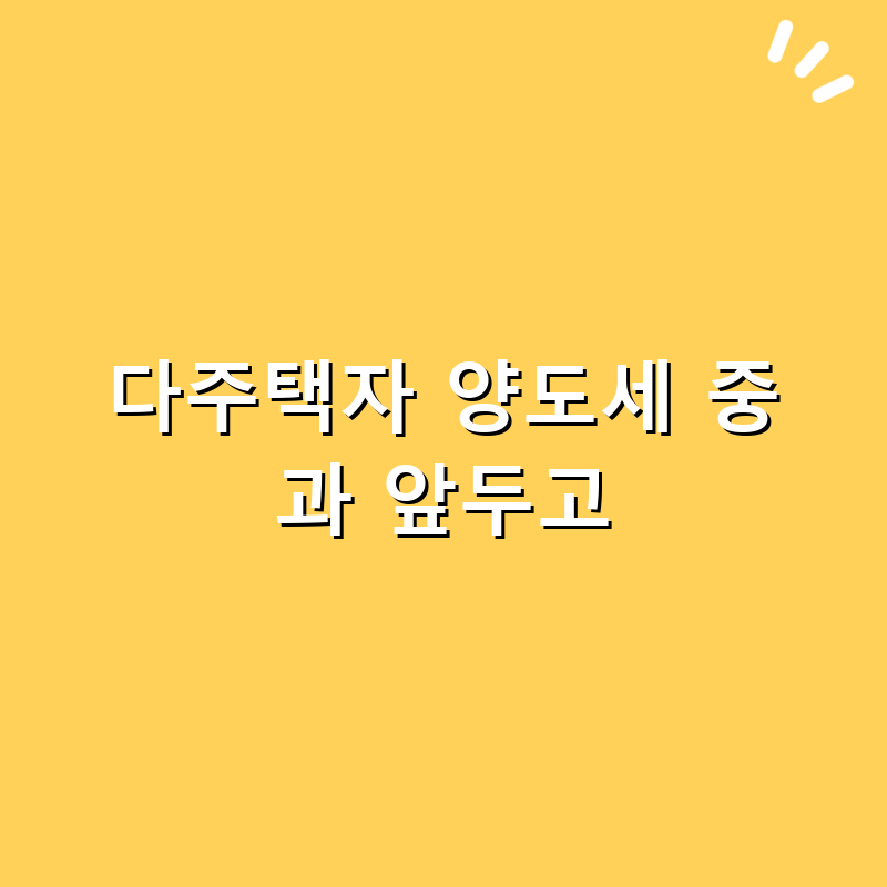 - 중과세 대상: 다주택자는 정부의 정책에 따라 양도세 중과 대상이 됩니다.
