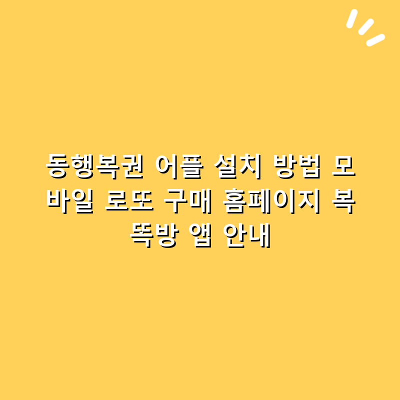 동행복권 어플 설치 방법 모바일 로또 구매 홈페이지 복똑방 앱 안내