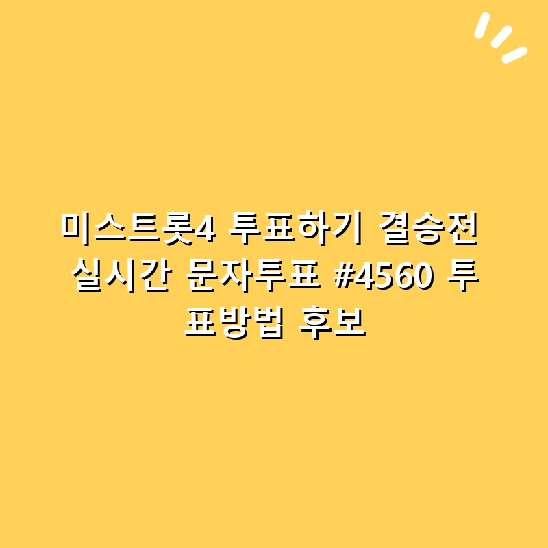 미스트롯4 결승전 관련 실시간 문자투표(#4560) 방법과 후보에 대한 정보를 제공합니다. 눈에 띄는 참가자들의 매력과 투표 방법을 정확히 이해하여, 여러분의 소중한 한 표를 효과적으로 행사하는 방법을 안내합니다.