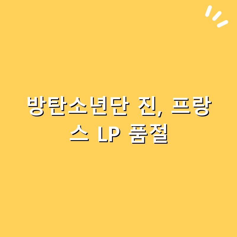 1분 요약: 방탄소년단 진의 프랑스 LP가 품절되어 많은 팬들이 아쉬움을 겪고 있습니다. 이로 인해 LP 구매에 대한 관심이 집중되고 있으며, 현재 상세 내용은 발표되지 않았습니다.