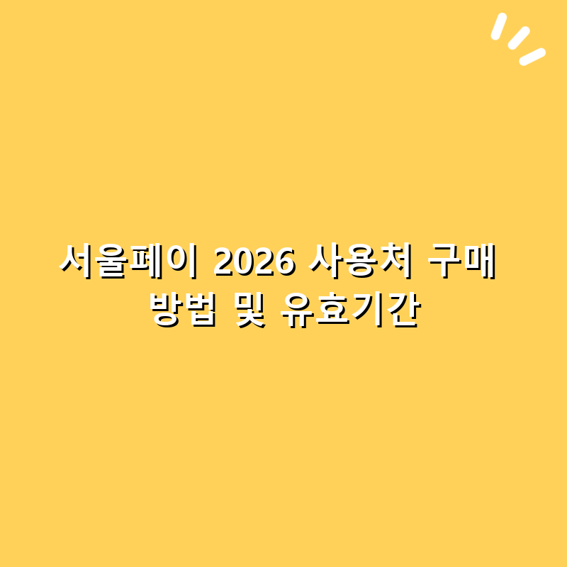 서울페이 2026은 서울시에서 제공하는 디지털 결제 수단으로, 다양한 상점에서 활용될 예정입니다. 구매 방법은 서울페이 앱을 통한 간편한 절차를 통해 이루어지며, 유효기간은 발급일로부터 5년입니다. 구체적인 사용처는 서울시 관내 가맹점에서 확인 가능하며, 필요한 정보는 서울페이 공식 웹사이트에서 자세히 안내될 것입니다.