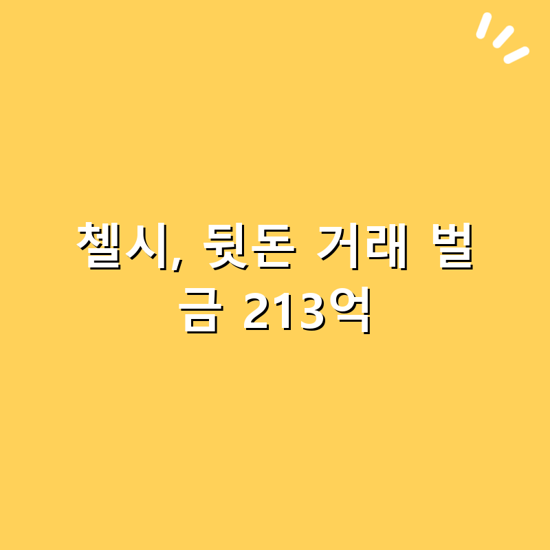 첼시는 뒷돈 거래 혐의로 213억 원의 벌금을 처분받았으며, 사건의 경과와 후속 조치에 대해 명확한 정보는 현재로서는 공개되지 않았습니다.