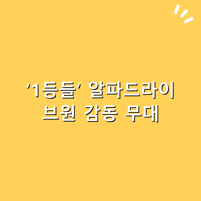 1분 요약: ‘1등들’ 알파드라이브원의 최근 공연은 관객들에게 깊은 감동을 주었던 무대입니다. 끊임없는 열정과 창의적인 연출로 관람객의 마음을 사로잡은 이 공연은 많은 이들이 기대와 흥미를 가지고 찾아가는 무대가 되었습니다.
