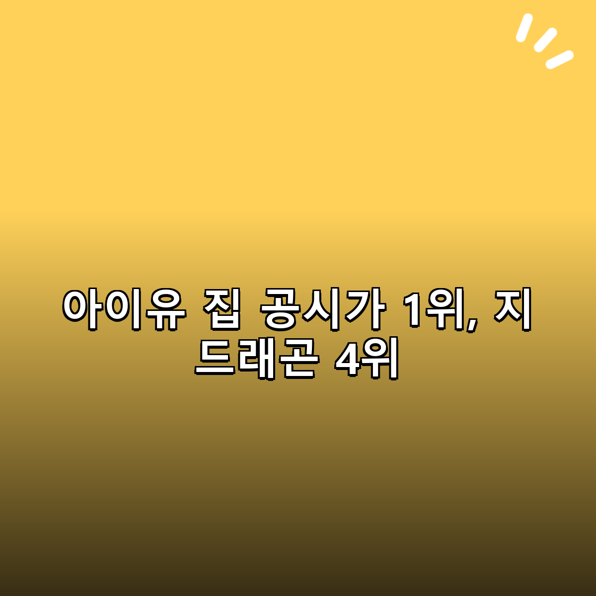 1분 요약: 아이유의 집이 공시가 1위를 기록하며 많은 관심을 받고 있습니다. 이어서 지드래곤의 집이 4위를 차지했고, 두 사람의 부동산 가치 상승은 연예계에서 큰 화제가 되고 있습니다.